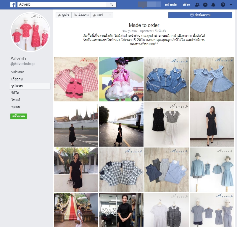 ซึ่งเสื้อผ้าแต่ละแบบสามารถปรับแก้ให้ตรงตามความพอใจของลูกค้าได้ กรณีที่สั่งตัด ถ้าทางร้านมีผ้าอยู่ สามารถสั่งตัดได้เลย ราคาเท่างานขายหน้าร้าน ใช้เวลา 1 อาทิตย์ แต่ในกรณีที่มีการเปลี่ยนผ้า ราคาอาจมีการเปลี่ยนแปลงตามเนื้อผ้า (สั่งตัด 15-20 วัน) สามารถเลือกผ้า เลือกแบบในร้าน ตัดตามไซส์ได้ หากสนใจสินค้า สามารถติดต่อได้ทาง inbox เพจ Adverb หรือ โทร. 081-626-9904 ID line:joy_adverb