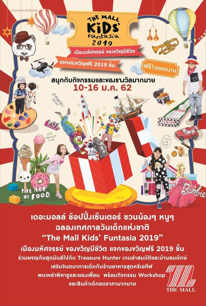 ต้อนรับเทศกาลวันเด็กในปีนี้ เดอะมอลล์ ช้อปปิ้งเซ็นเตอร์ ชวนผู้ปกครองพาลูกๆหลานๆ มางาน“The Mall Kids’ Funtasia 2019” เมืองมหัศจรรย์ ของขวัญมีชีวิต แจกของขวัญให้เด็กๆ กว่า 2019ชิ้น อิ่มอร่อยไปกับอาหารและขนมหวานสำหรับคุณหนู ร่วมกิจกรรมเวิร์คช็อป เล่นเกมส์ลุ้นของรางวัลมากมาย พิเศษพบโชว์แดนซ์จากเหล่าพิคาชู และร่วมเดินขบวนไปกับพิคาชู และผองเพื่อน พบส่วนลดสินค้าเด็กสูงสุด 50%และหลากหลายกิจกรรมที่ขนมาให้ร่วมสนุกเฮฮาทั้งครอบครัว งานจัดขึ้นระหว่างวันที่ 10 – 16 มกราคม 2562 ที่ เดอะมอลล์ ช้อปปิ้งเซ็นเตอร์ ทุกสาขา (ยกเว้นรามคำแหง)