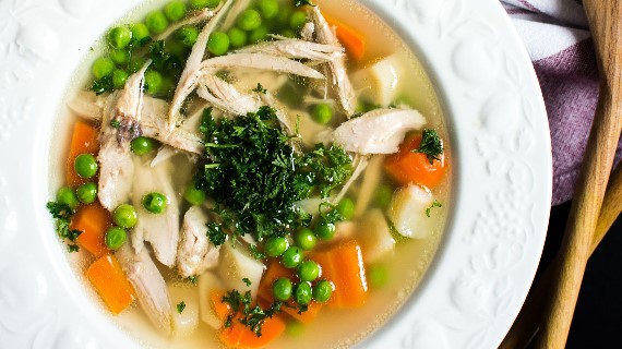 2.ซุปไก่ใส่มันฝรั่ง มีทั้งโปรตีนจากเนื้อไก่ และแป้งจากมันฝรั่งที่เด็กๆ ชอบ