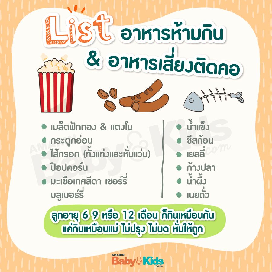 ทั้งนี้ในวัยที่ลูกเริ่มหัดกินอาหาร ก็มีอาหารหลายอย่างที่แม่ควรเลี่ยง เพื่อไม่ให้เสี่ยงติดคอ และเสี่ยงแพ้อาหาร … โดยสิ่งสำคัญคือ กินแบบ BLW จะไม่มีการแยกอาหารตามวัย และลูกสามารถกินได้เหมือนคุณแม่ แต่จะแยกกระบวนการทำคือ ไม่ปรุง ไม่บด และต้องหั่นให้ถูกต้องตามวัยเท่านั้น
