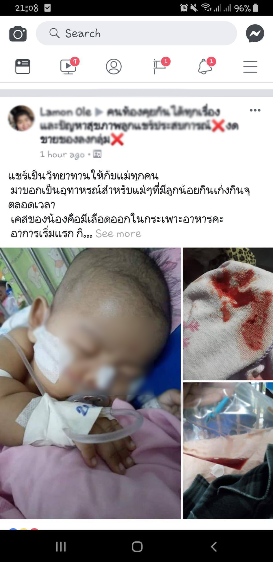 “แชร์เป็นวิทยาทานให้กับแม่ทกคน มาบอกเป็นอุทาหรณ์สำหรับแม่ๆที่มีลูกน้อยกินเยอะ กินเก่ง กินตลอดเวลา เคสของน้อง คือมีเลือดออกในกระเพาะอาหารค่ะ อาการเริ่มแรก กินจนอ้วก ไม่อ้วกไม่เลิกกิน ตามมาด้วยอาการสำลักบ่อยๆ จนอ้วกเป็นเลือด