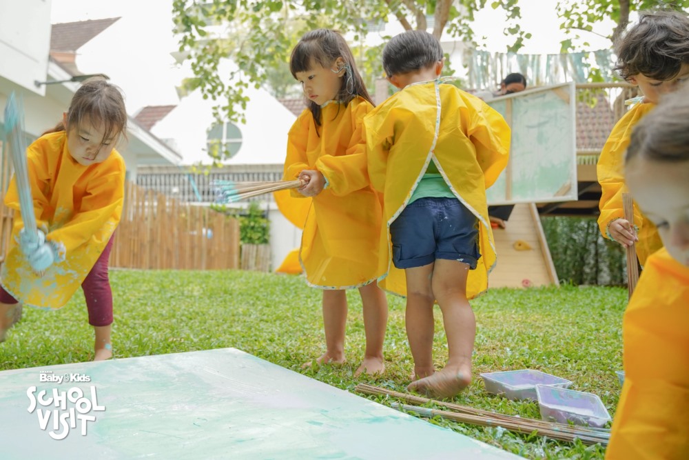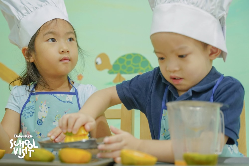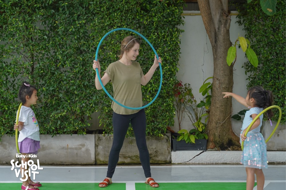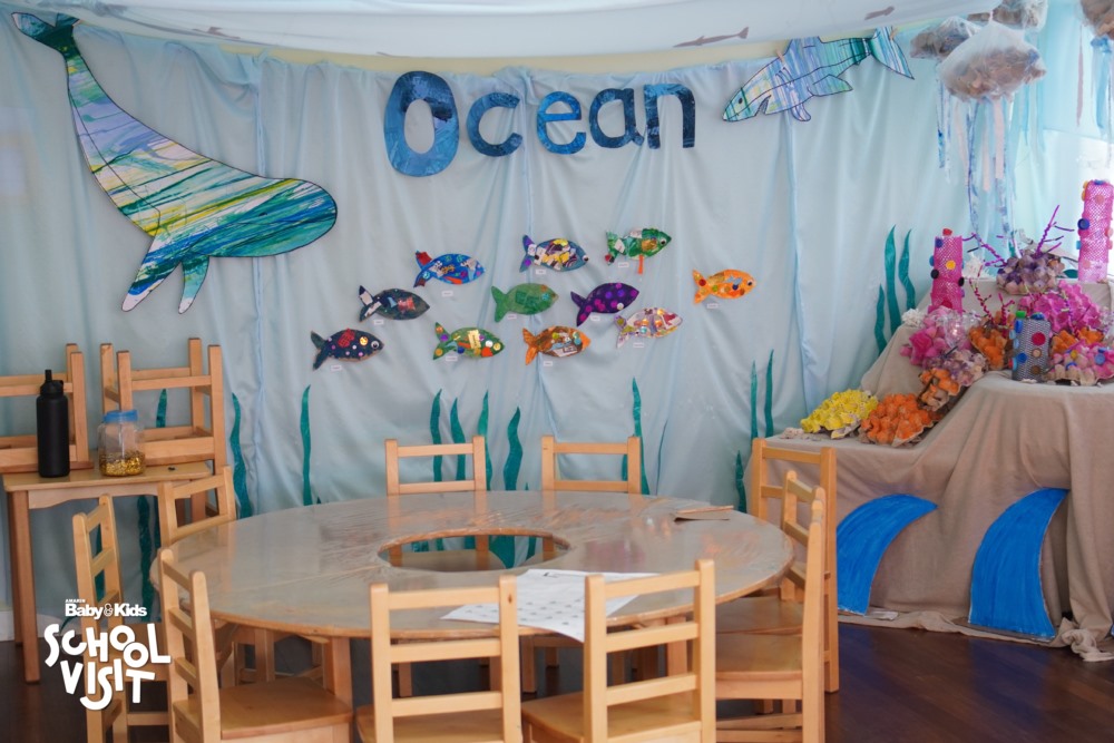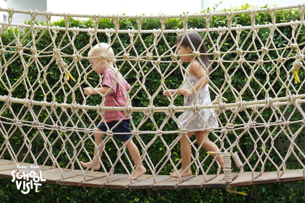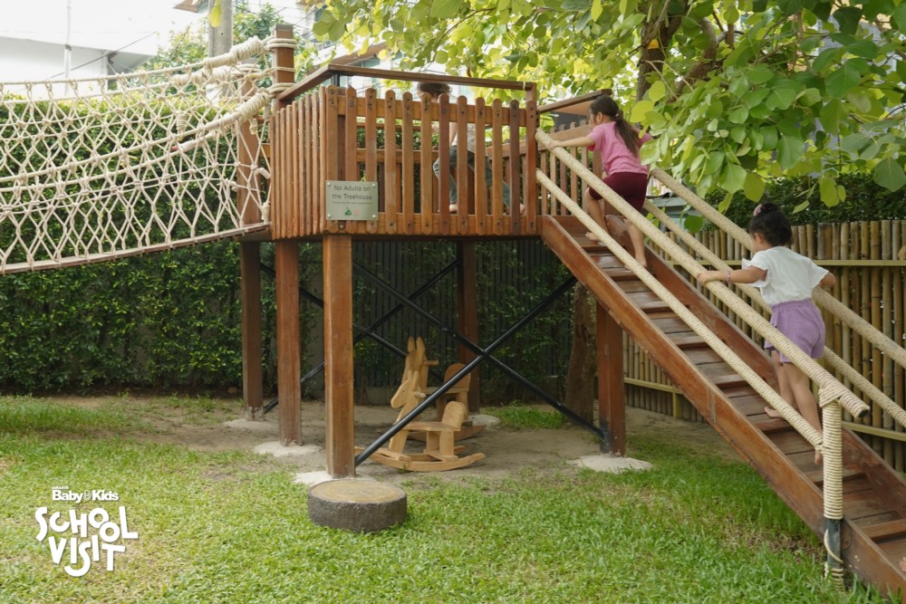 B: กิจกรรมพิเศษที่ถูกใจเด็กๆ อย่าง • Soft play เล่นสนุกแบบได้ทักษะวิชาพละ Sand play หรือบ่อทราย บ่อปลา, Splash Pool สระน้ำขนาดเล็ก ระดับน้ำแค่ข้อเท้า รวมถึงหน้าห้องทุกห้องปูพื้นยาง เพื่อป้องกันเมื่อเด็กล้มแล้วจะไม่บาดเจ็บ ให้เด็กๆขี่จักรยานได้ มีบรรยากาศต้นไม้รายรอบ เป็นต้น • ออกแบบพื้นที่ส่วนกลาง เช่น Cooking class ห้องดนตรีและห้องสมุด • ช่วงเวลา นั้นเด็ก ๆ สามารถเลือกเรียน Extra-Curricular ที่มีให้เลือกตามความสนใจซึ่งมีมากถึง 500 กิจกรรมสามารถเปลี่ยนไปได้ทุกเทอม เช่น หมากรุก เลโก้ ทำอาหาร เป็นต้น