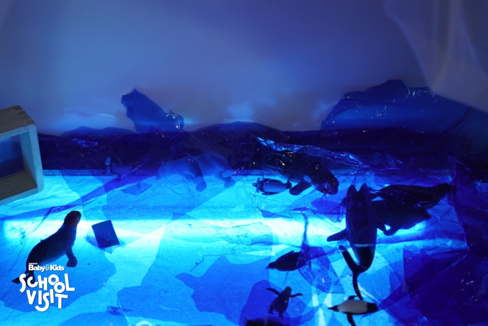 ภาพปลาวาฬฝีมือเด็ก ๆ ในแคนทีน ที่ยามเย็นจะปรับเปลี่ยนเป็นกิจกรรม U time ที่เด็กๆ เลือกเองได้