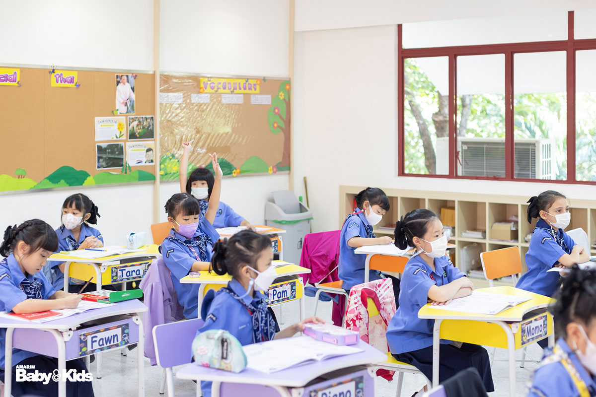 ชั้นเรียนภาษาอังกฤษของน้อง ป.1 แบ่งกลุ่มทำกิจกรรมหลากหลาย คุณครูดีไซน์กิจกรรมให้เหมาะสมสำหรับแต่ละชั้น เพราะคุณครูเป็นกันเองเมื่อสงสัยเด็กๆจึงไม่กลัวที่จะถาม