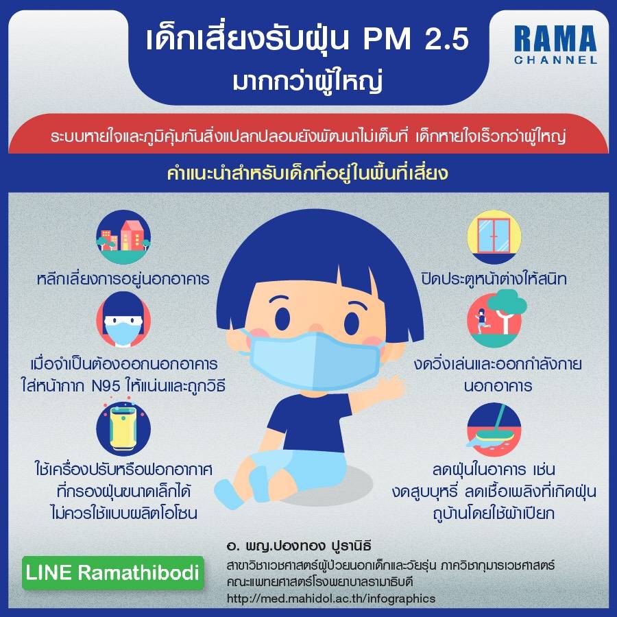 นพ. บรรจบ ชุณหสวัสดิกุล คณะบดีวิทยาลัยการแพทย์บูรณาการ ม.ธุรกิจบัณฑิตย์ แนะนำวิธีดูแลตัวเองให้ปลอดภัยจากฝุ่นPM2.5 ไว้ 2 วิธีหลักๆ คือ “ป้องกันไม่ให้เข้าไป และขับของเสียออกมา” วิธีป้องกันที่ดีที่สุดคือหลีกเลี่ยงไปอยู่ในที่โล่งแจ้ง เด็กๆงดกิจกรรม เล่นกีฬากลางแจ้ง เพราะยิ่งออกกำลังกาย จะยิ่งหายใจมากขึ้น ก็เท่ากับรับฝุ่นพิษเพิ่มขึ้นด้วย
