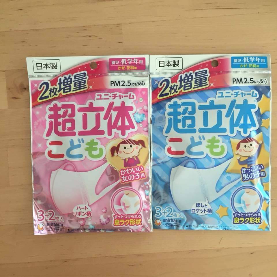 - หน้ากากกันฝุ่นสำหรับเด็กผู้ชาย (ซองสีฟ้า) และผู้หญิง (ซองสีชมพู)