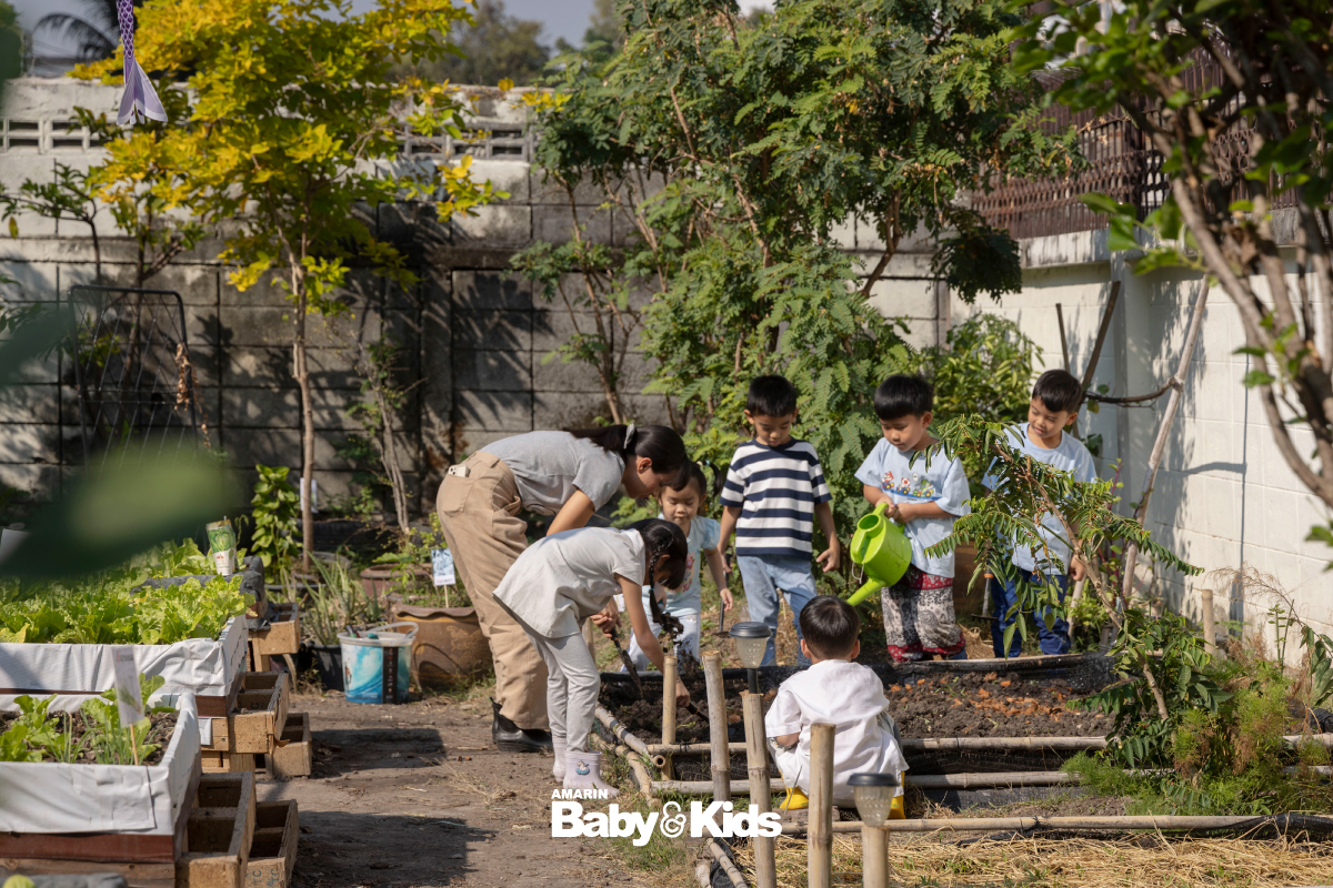 ครูอั๋นได้นำธรรมชาติเข้ามาใกล้ตัวเด็ก ๆ เพื่อให้เด็กได้เรียนรู้จากประสบการณ์จริง โดยเด็ก ๆ จะได้มีส่วนร่วมตั้งแต่การปลูก ดูแล และเก็บเกี่ยวผัก เพื่อนำมาใช้เป็นวัตถุดิบประกอบอาหารในมื้อกลางวัน