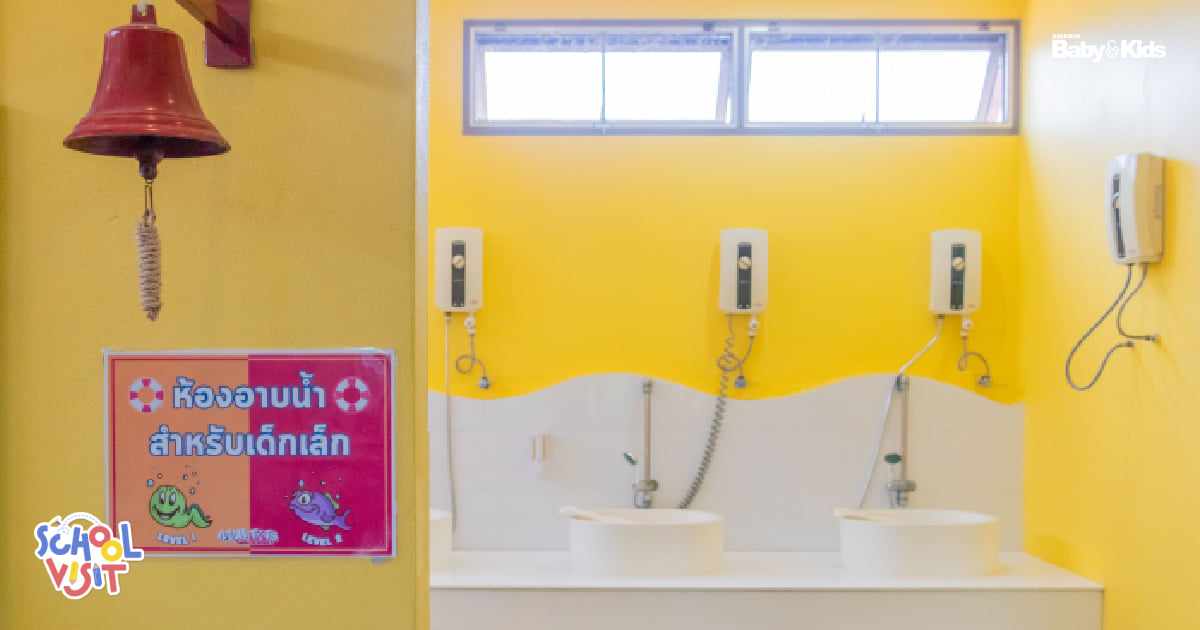 ห้องน้ำแยกส่วนเปียกส่วนแห้ง มีห้องอาบน้ำทั้งสำหรับเด็กเล็กและเด็กโต และอุปกรณ์อำนวยความสะดวกมากมายให้บริการ ทั้งไดร์เป่าผม ล๊อคเกอร์ ห้องอาบน้ำ ยาสระผม