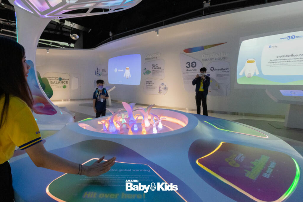 - พลังงานขับเคลื่อนชีวิต พาทุกคนย้อนเวลากลับไปสู่ก้าวแรกแห่งการค้นพบพลังงานไฟฟ้า เรียนรู้เทคโนโลยีการผลิตไฟฟ้าจากพลังงานสะอาดที่เป็นมิตรต่อสิ่งแวดล้อมของ กฟผ. สนุกกับเกมการเรียนรู้ด้านพลังงานแบบ Self-learning สั้น ๆ ที่ใช้เทคนิค Model Interactive Projection Mapping Graphic Wall
