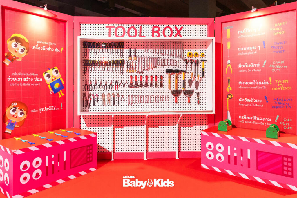 โซนนี้มีอุปกรณ์ให้เด็ก ๆ ทดลองเล่นมากมาย