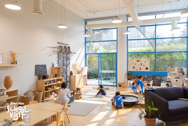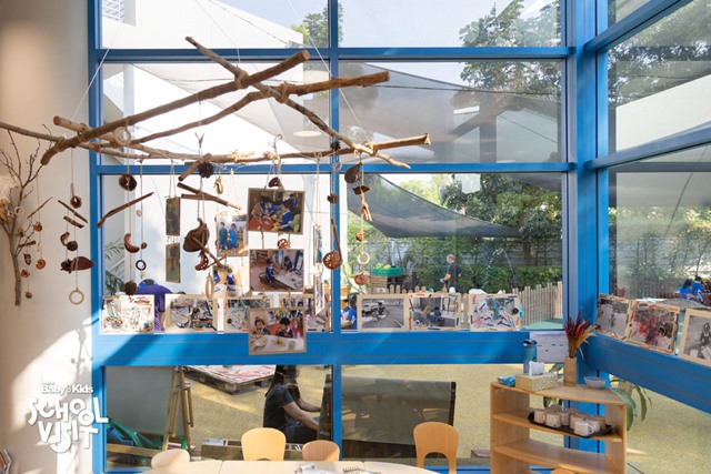 ที่ Shrewsbury International School Bangkok City Campus ออกแบบโรงเรียนให้มีสิ่งแวดล้อมเหมือนบ้าน มีโถงต้อนรับแสนอบอุ่นให้ผู้ปกครองได้ใช้เวลาร่วมกับเด็ก ๆ ในช่วงเช้า สามารถนั่งพูดคุยกับลูกจนกระทั่งถึงเวลาเรียน บรรยากาศภายในตกแต่งด้วยองค์ประกอบจากธรรมชาติเป็นหลัก ทั้งกิ่งไม้ เปลือกไม้ ใบไม้และงานศิลปะที่เด็ก ๆ ได้ช่วยกันลงมือทำด้วยตนเอง ตัวอาคารและห้องเรียน สร้างเพื่อเด็กวัยอนุบาลโดยเฉพาะ มีอาคารแยกออกมาจากอาคารอื่น ๆ เพราะเด็กเล็กมีความต้องการที่แตกต่างจากเด็กโต เหมือนเป็นโรงเรียนเล็กในโรงเรียนใหญ่ จึงมีความปลอดภัยสูงมาก นอกจากนี้ยังมีฐานกิจกรรมกระจายอยู่ทั่วทั้งในห้องเรียนและสวนด้านนอก ให้เด็ก ๆ ได้ออกมาสำรวจ สัมผัสและลงมือทำด้วยตนเอง ตามความสนใจ ทั้งลานเล่นทราย ระบายสี เล่นน้ำ (Splash Pool) ที่จะช่วยให้เด็ก ๆ ได้คุ้นชินกับน้ำ หรือ โซน Forest School ที่เด็ก ๆ จะได้ทำกิจกรรมปีนป่ายต้นไม้ เล่นกับธรรมชาติได้อย่างปลอดภัย ทำให้เด็ก ๆ ไม่เบื่อ มีอิสระในการเรียนรู้ เพราะความรู้ไม่ได้จำกัดการเรียนแค่ภายในห้องเรียนแต่สามารถเรียนรู้นอกห้องเรียนได้ด้วย