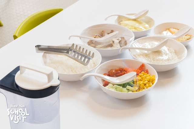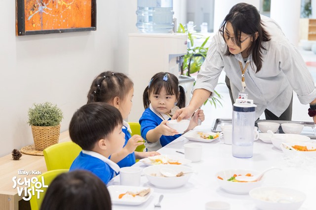 ช่วงพักทานอาหารกลางวัน เมนูอาหารที่โรงเรียนจัดให้มีความหลากหลายและครบห้าหมู่ตามหลักโภชนาการ เช่น อาหารเอเชีย อาหารฝรั่ง อาหารไทยมีทั้งเมนูเส้น เมนูข้าว ที่เด็ก ๆ เลือกทานได้ด้วยตนเอง