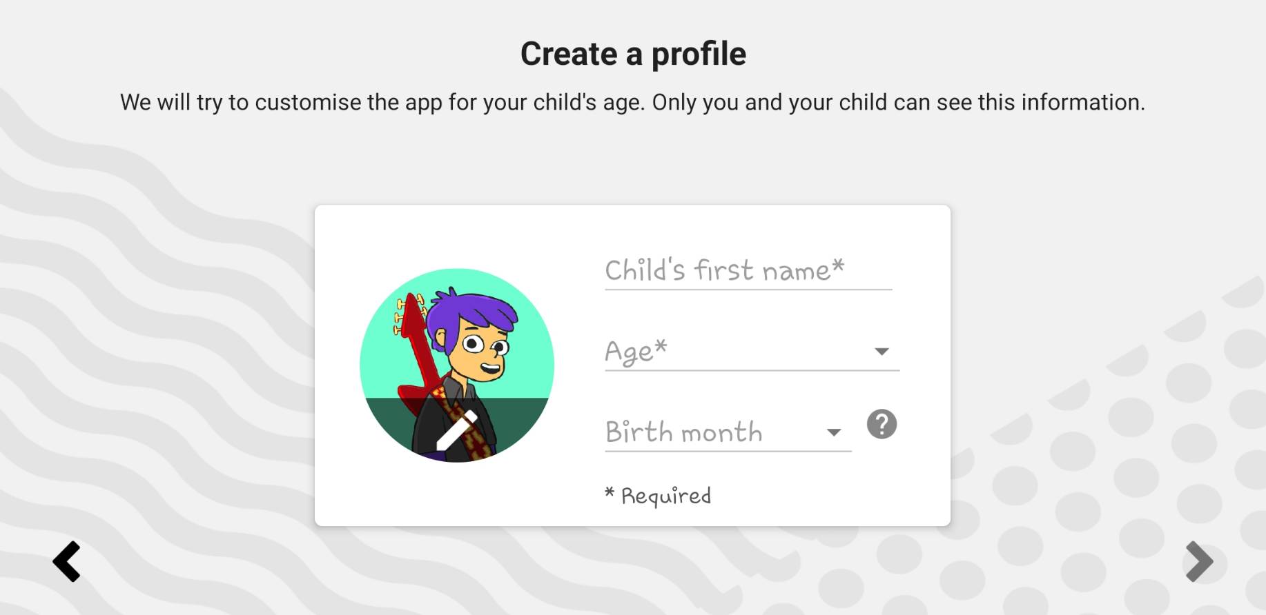 สร้างโปรไฟล์ของลูก เลือกภาพโปรไฟล์ได้ตามต้องการ ใส่ชื่อ อายุ และวันเกิดตามความเป็นจริง เพื่อที่แอปจะเลือกเนื้อหาที่เหมาะสมให้ เมื่อลูกกดภาพโปรไฟล์ก็สามารถเข้าสู่หน้าแรกของYoutube Kidsได้ทันที