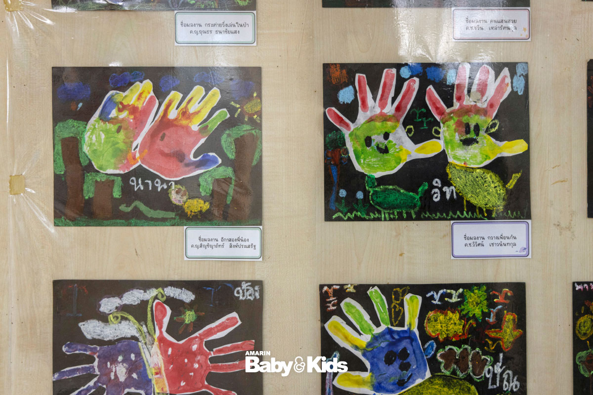 - คุณครูใส่ใจเด็กทุกคนและมองว่าทุกพื้นที่ในโรงเรียนคือพื้นที่แห่งการเรียนรู้ของเด็ก ไม่ว่าการนำเสนอจะเป็นรูปแบบใด คุณครูจะนำคำพูดของเด็ก ภาพผลงานและเรื่องราวที่เด็กนำเสนอ มาจัดแสดงบนบอร์ดในห้องเรียน เพื่อให้เด็กได้เห็นคุณค่าในตนเอง รู้สึกว่าตนมีตัวตนและความคิดของตนได้รับการยอมรับ